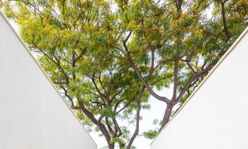 The program required defined areas, where small groups of children and staff can engage in outdoor learning and playing with minimal distractions. Thus, the courtyard was designed as a series of outdoor rooms, using the walls that define them as functional and playful entities. One of the outdoor rooms is a bridge that connects two parts of the building.