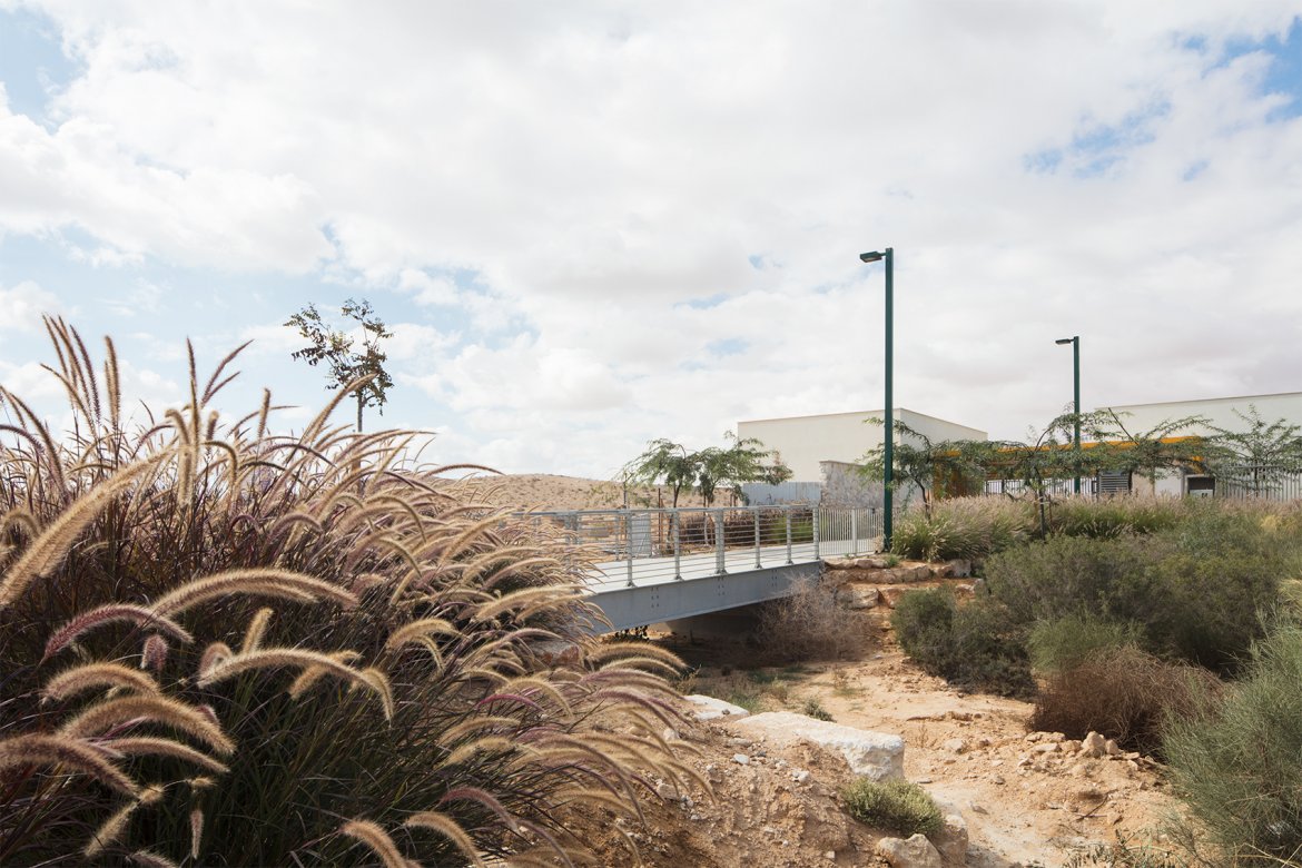 תכנון הנוף לבית ספר חדש ברמת הנגב. התכנון שימר את אופיו של הואדי הסמוך וכלל הסדרה ושיקום שלו. בסמוך לבית הספר תוכנן אזור המתנה עם אלמנט הצללה ייחודי. חצר בית הספר תוכננה עם מגוון אזורי פעילות מוצלים וצמחיה התואמת את האקלים ומושקית במים מליחים.